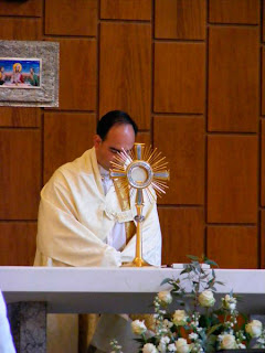 celebraría la Misa, salió con ornamentos de fiesta Mariana. Para mis adentros